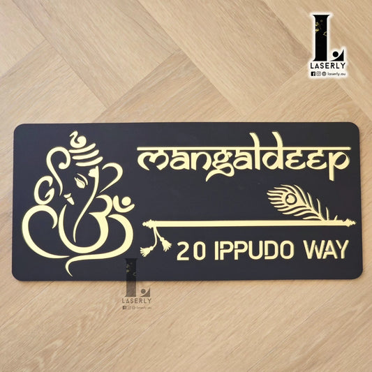 Ganesha House Number Sign (Black and Silver mirror)