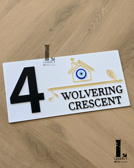 Flute House Number Sign with Evil eye (Black)