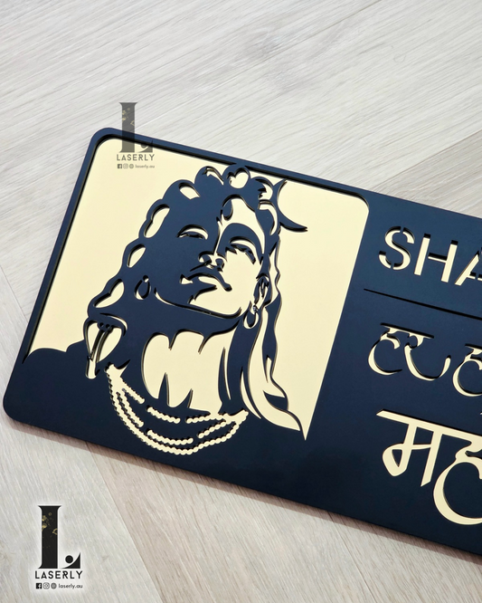 Mahadev House Sign – Mirror Gold & Black Acrylic
