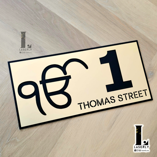 Ek Onkar House Number Sign (Black and Mirror Gold)