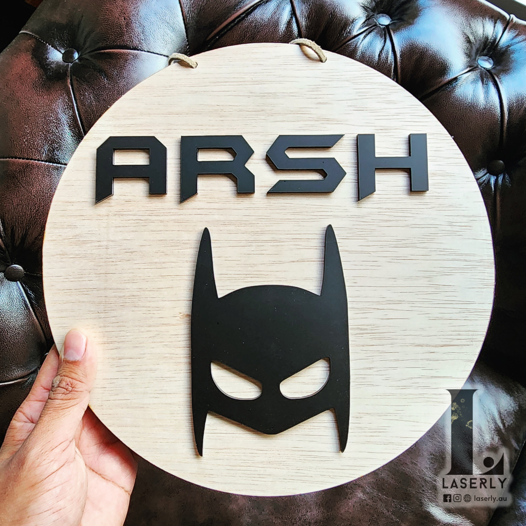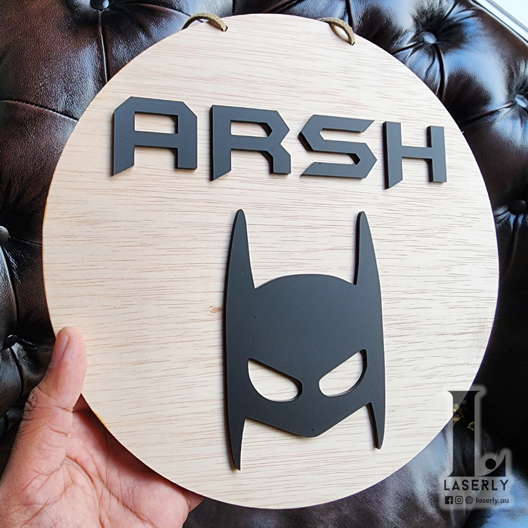 Batman mask nursery door sign made of acrylic.