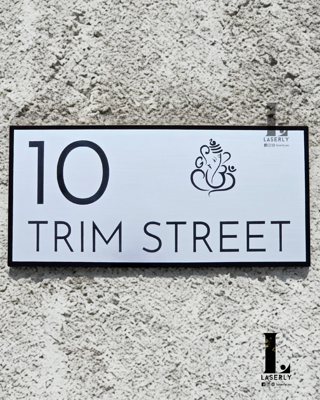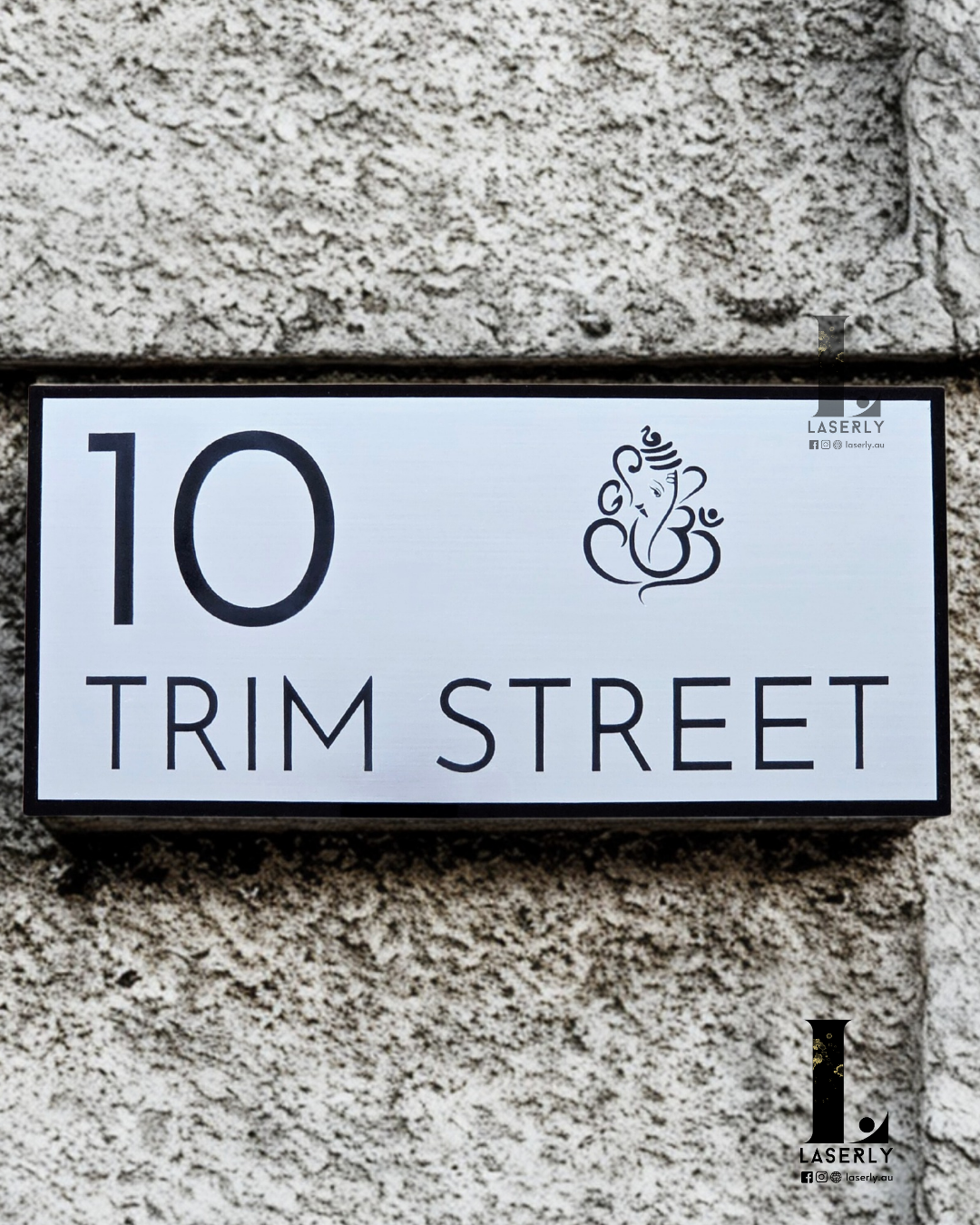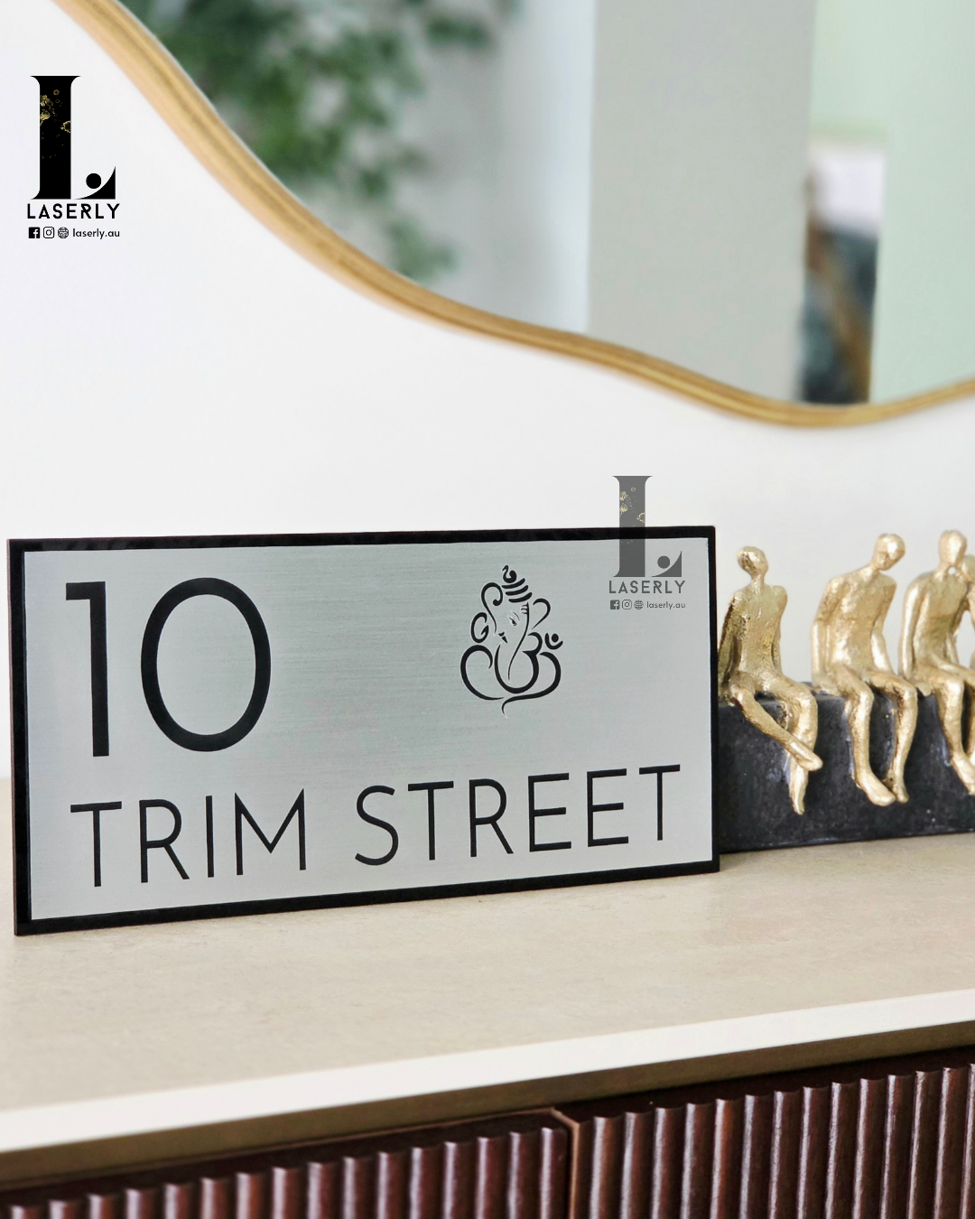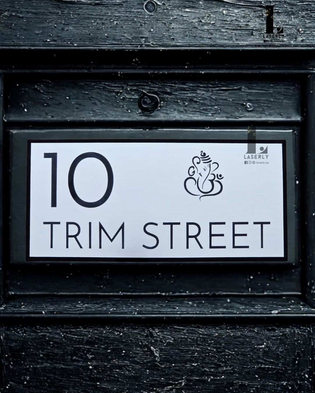 Ganesha Minimalistic House Number Sign (Brushed Silver)