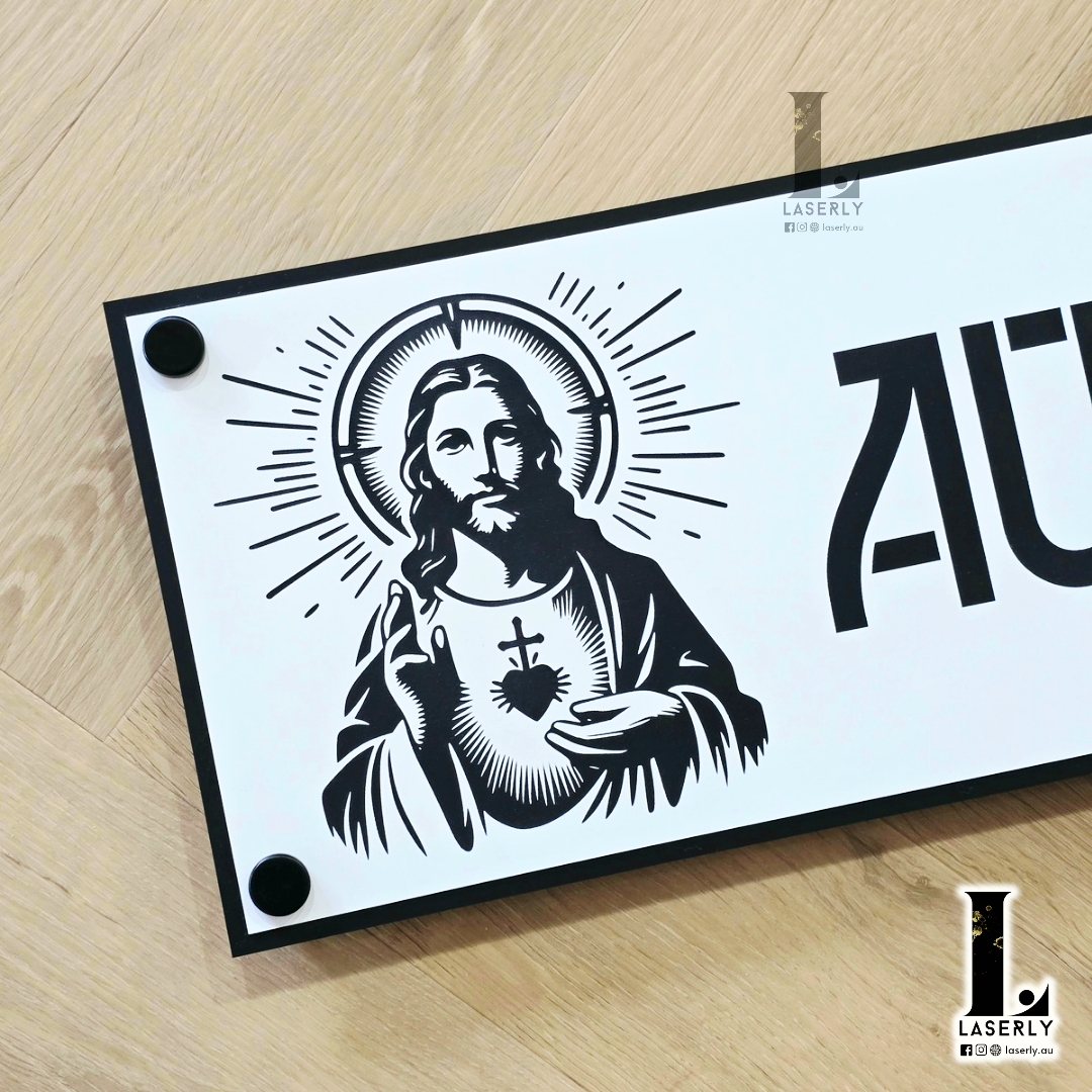 Elevate your home's entrance with a personalized Jesus House Number Sign, thoughtfully crafted to combine faith and function. This custom-made sign features your house number or names beautifully serving as a daily reminder of God’s word.