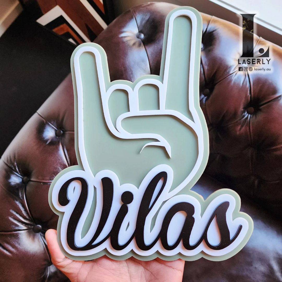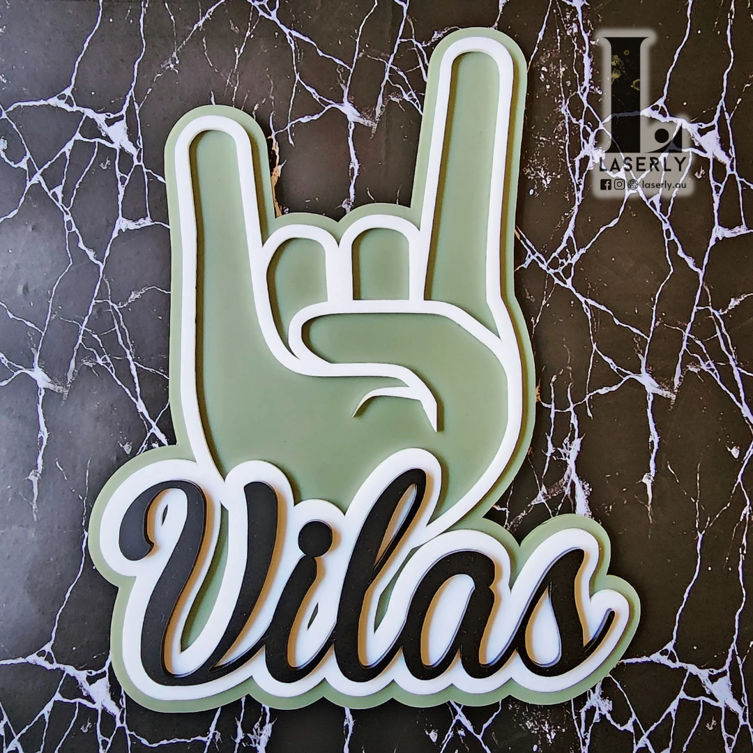 Rock On name sign made of 3 layer of acrylic.